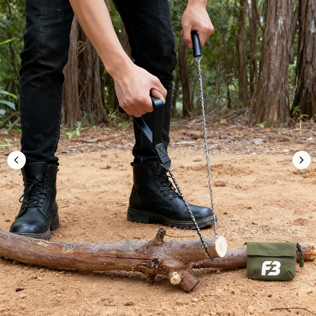 A high-strength pocket chain saw that cuts through wood quickly and efficiently. A must have for outdoor expeditions and emergency prep.